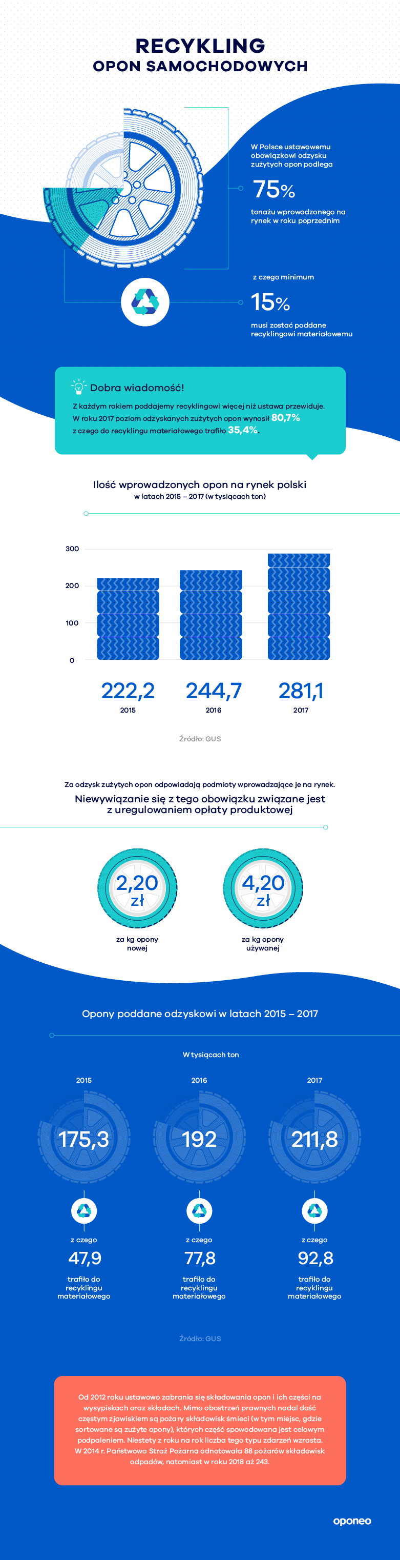 Aktualnie w naszym kraju recyklingowi poddaje się nieco ponad 80% opon, z czego 35% poddaje się recyklingowi materiałowemu. W dalszym ciągu pozostaje jednak około 56 tysięcy ton niezutylizowanych opon rocznie, które po odpowiedniej obróbce mogłyby przynosić konkretne korzyści ekonomiczne, zamiast zalegać na składowiskach.