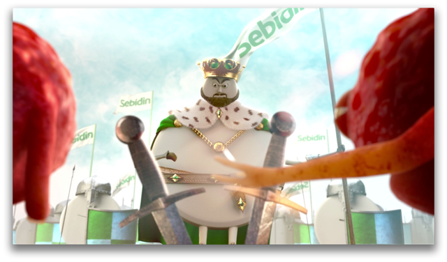 Sebidin to lek, który skutecznie zwalcza bakterie wywołujące infekcję gardła. Aby pokazać tę skuteczność w nieszablonowy i spektakularny sposób, postawiliśmy na batalistyczną konwencję z dowcipną aluzją. W humorystycznej fabule, i z wykorzystaniem animacji, gardło staje się metaforycznym polem bitwy. Posłańcy bakterii, jak niegdyś Krzyżacy pod Grunwaldem, wyzywają wojska Sebidinu do walki. Teraz też do bitwy dochodzi. Finał jest do przewidzenia – Sebidin wygrywa bitwę o gardło.