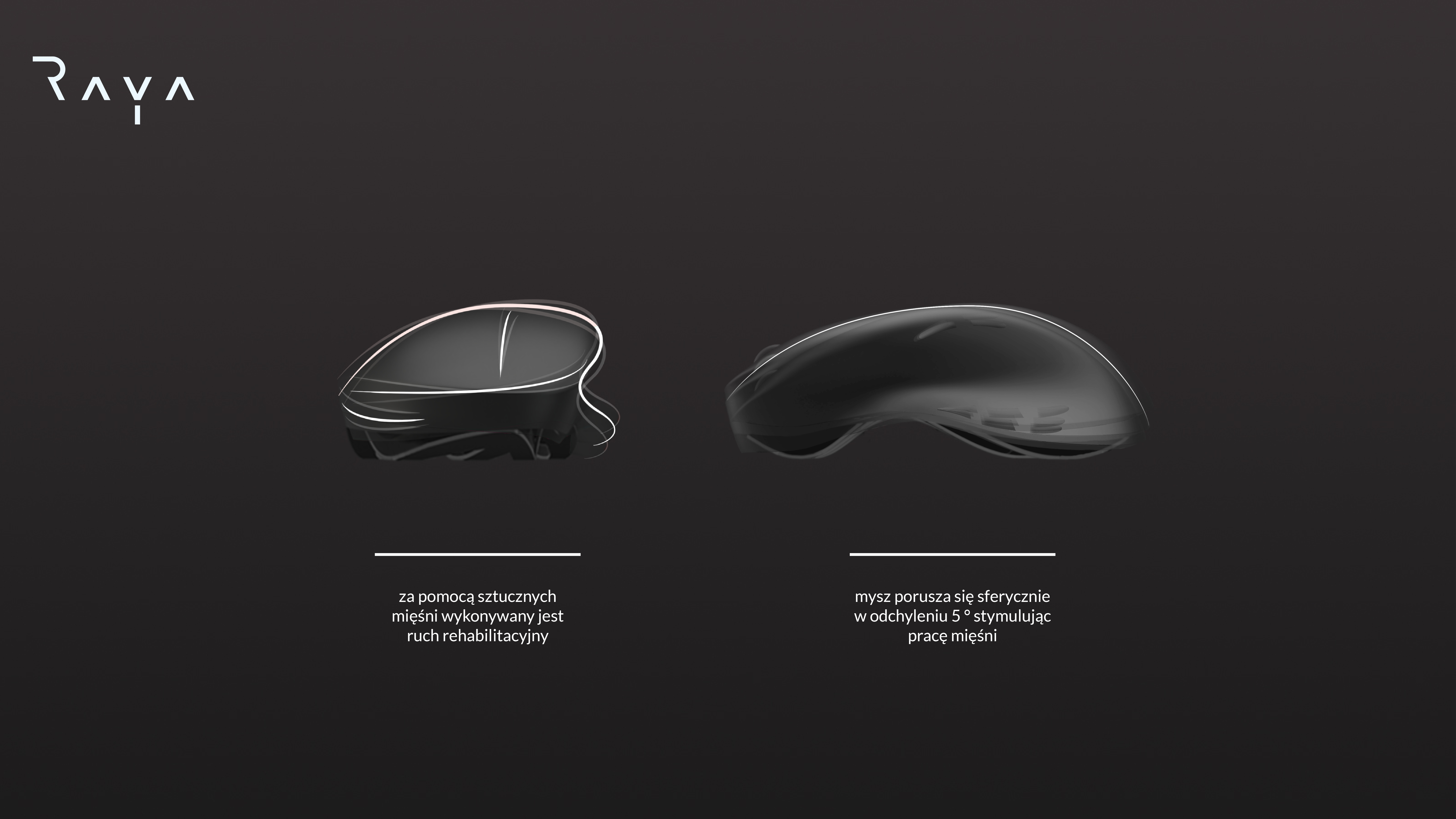 Raya to optyczna mysz rehabilitacyjna dla graczy komputerowych, która przeciwdziała powstawaniu zespołu cieśni nadgarstka oraz problemom związanym z kłębem kciuka. Kształt myszy jest dopasowany do naturalnego kąta dłoni oraz jest specjalnie wyprofilowana pod kciuk. Co istotne, mysz analizuje zmęczenie, napięcie mięśni, tętno oraz wskaźnik GSR, który pozwala określić poziom zaangażowania oraz przeżywania gry – dzięki temu mysz dostosowuje do użytkownika najoptymalniejszy ruch rehabilitacyjny oraz umożliwia głębsze doświadczanie gry poprzez iluminacje świetlne, które reagują dynamicznie wraz ze zmianą środowiska gry. Autorką projektu jest Aleksandra Radlak z ASP w Krakowie .