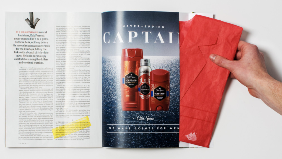 Old Spice przygotował prezent dla czytelników “GQ”. Do każdego z egzemplarzy dołącza jednorazową, zapachową marynarkę.
