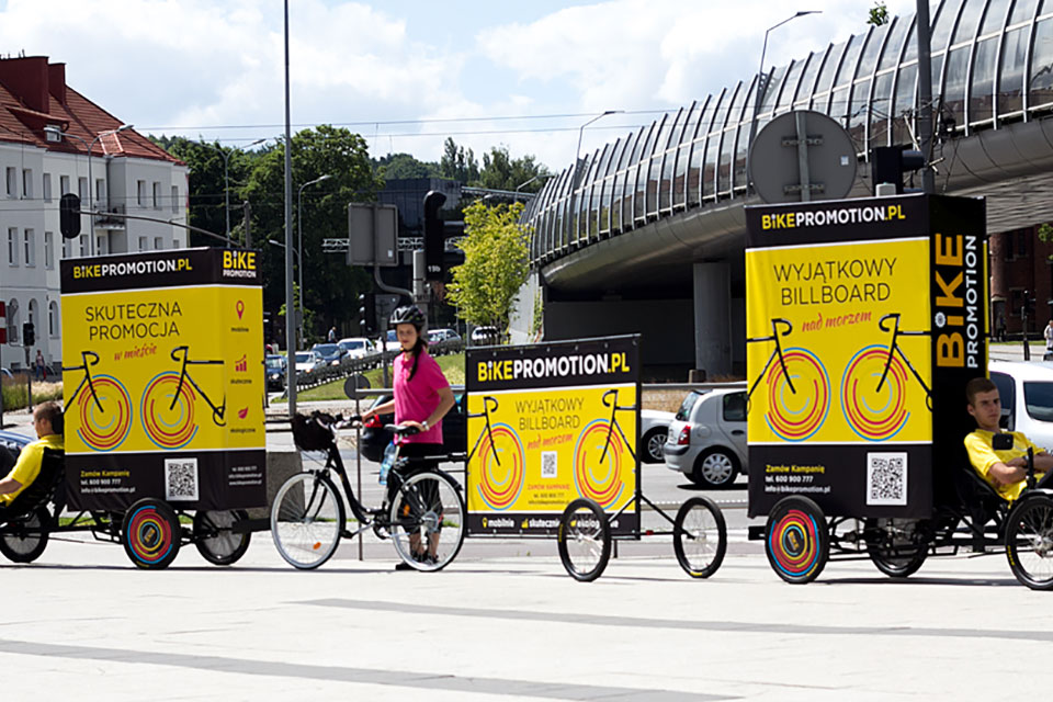 W Polsce od kilku lat w tym segmencie reklamy działa bikePROMOTION. Firma oferuje możliwość kompleksowego przygotowania i przeprowadzenia kampanii przy wykorzystaniu mobilnych nośników reklamowych, w tym m.in. zaplanowanie i koordynacja kampanii, przygotowanie nośników (w tym druk i montaż), kolportaż materiałów i próbek, raportowanie i przeprowadzenie fotorelacji. Nad szczegółowym planowaniem, precyzyjnym dobraniem najpopularniejszych miejsc, organizacją i przebiegiem kampanii czuwają przeszkoleni promotorzy, którzy zapewnią Twojej reklamie dużą widoczność i większą skuteczność.