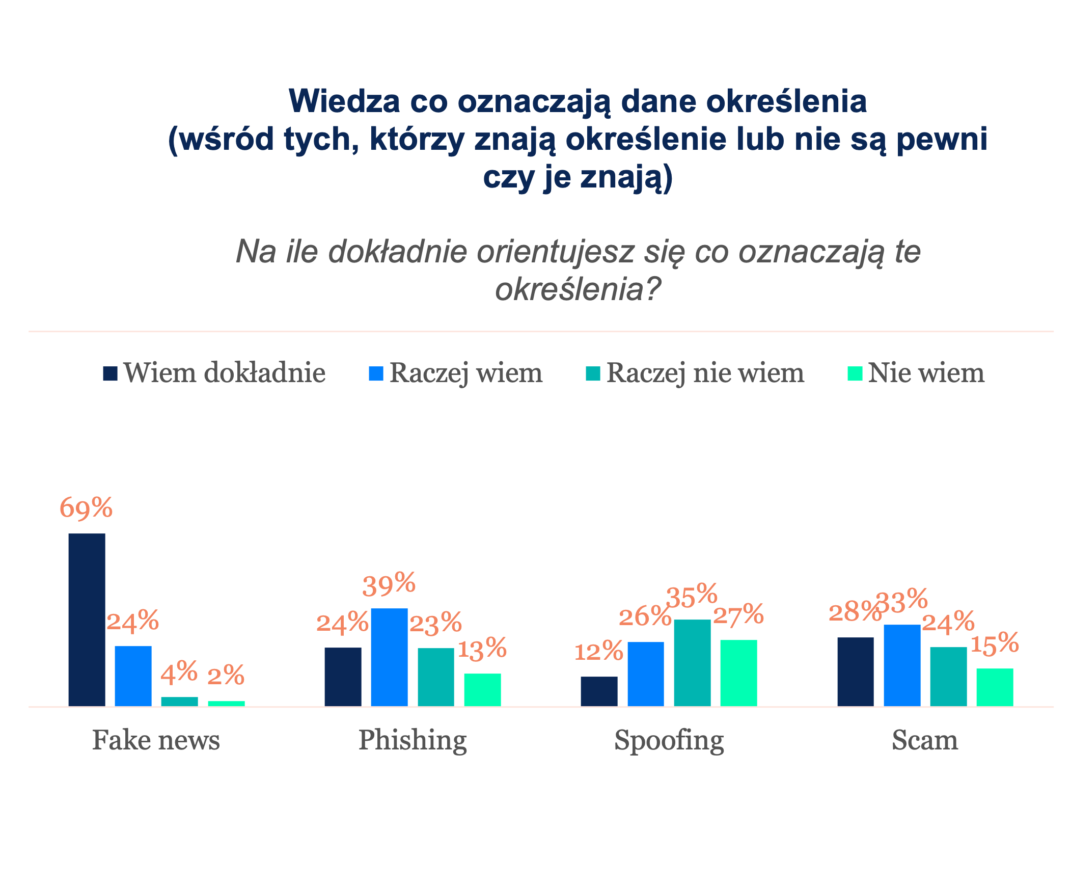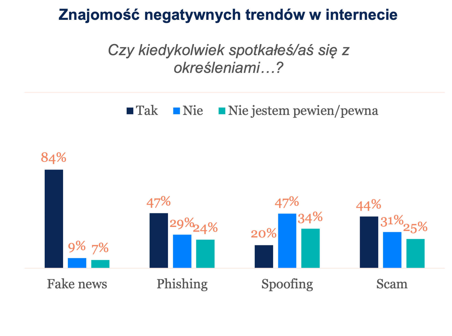 W Polsce świadomość zagrożeń w sieci jest dosyć wysoka. Z badania „Wiarygodność mediów cyfrowych” przeprowadzonego przez Mindshare Polska w maju 2022 na reprezentatywnej próbie użytkowników internetu powyżej osiemnastego roku życia wynika, że pojęcie „fake news” zna 84% ankietowanych w Polsce i zdecydowana większość przyznaje, że wie, co ono oznacza. Blisko połowa spotkała się już z hasłem phishing (47%) oraz scam (44%), co piąty internauta słyszał o spoofingu.