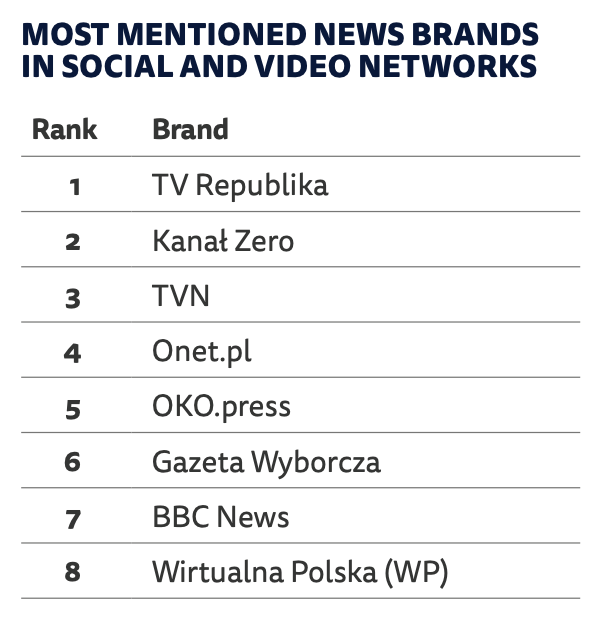 Swoje miejsce w raporcie Reuters Institute „Digital News Report” ma również Polska. Tradycyjne marki informacyjne odgrywają w Polsce słabszą rolę.