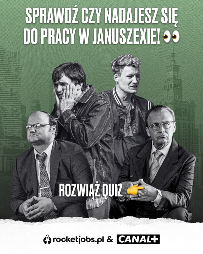 Z okazji finału serialu „Edukacja XD” dostępnego na platformie streamingowej Canal+, portal z ofertami pracy RocketJobs.pl udostępnił specjalny QUIZ. Rozwiązując go, dowiesz się, czy nadajesz się do pracy w serialowym januszexie, czyli firmie, w której nie ma mowy o płatnych nadgodzinach czy umowie o pracę. Szalone prośby szefa nie są ci straszne? Wiesz, jak z zyskiem i szybko sprzedać zbędne tonery do drukarki? W takim razie sprawdź, którego bohatera serialu „Edukacja XD” przypominasz najbardziej.