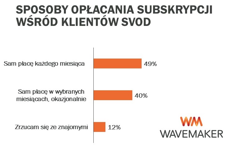 Blisko połowa grupy klientów SVOD samodzielnie opłaca abonament, stosunkowo niewielu badanych zrzuca się na dostęp do subskrybowanego serwisu.