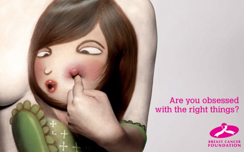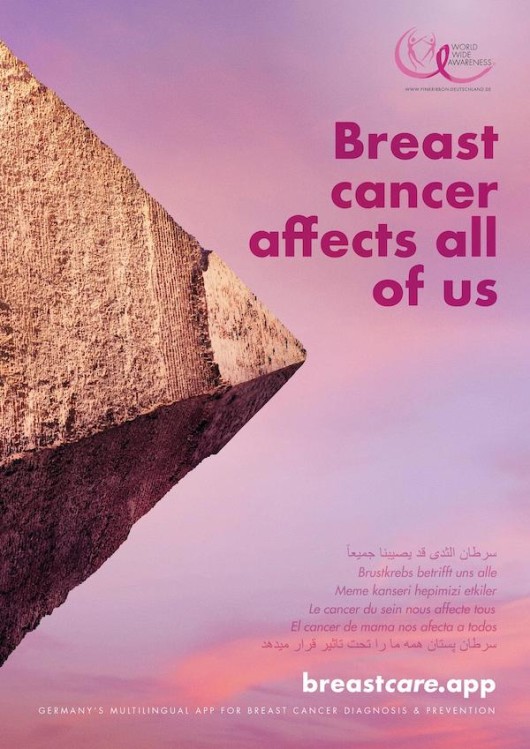 Nietypowa kreacja ma obrazować problem powszechnego występowania rak piersi – choroba może dotknąć kobietę bez względy na szerokość geograficzną, w której się znajduje, i bez względu na kształt piersi. Plakaty (z treścą tłumaczoną na wiele języków) z pewnością zapadają w pamięć i dają do myślenia – do formy piersi została porównana chociażby Wieża Eiffla, Wielka Piramida czy londyński wieżowiec 30 St Mary Axe (zwany również „Ogórkiem”).