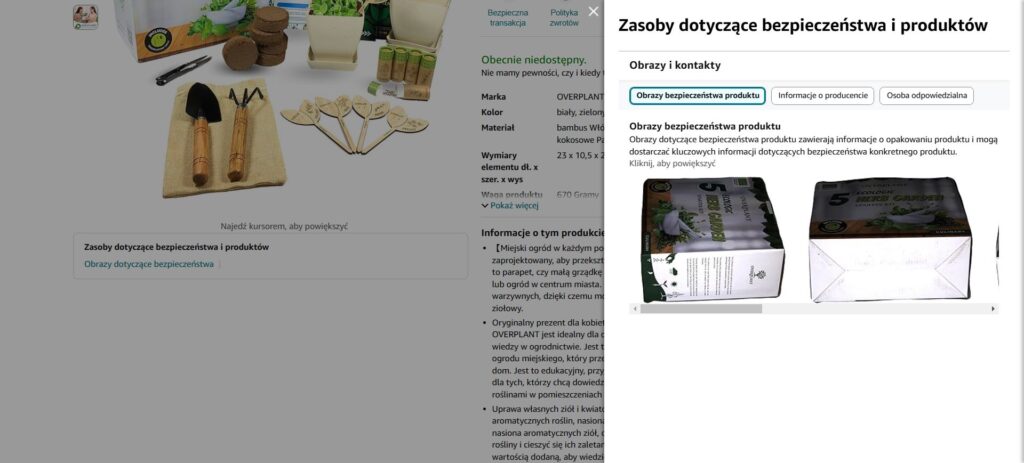 Zobacz, jak wymagane przez prawo dane prezentowane są na platformie Amazon:
