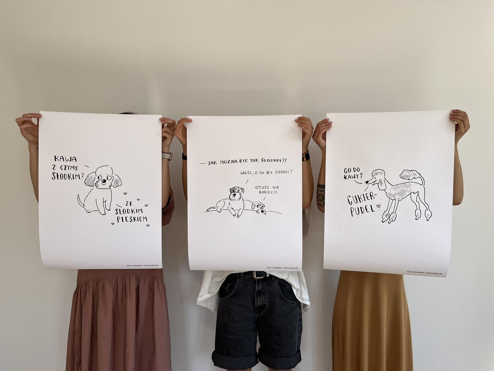 W roli bohaterów ilustracji zdobiących limitowaną, urodzinową kolekcję wcieliły się cztery psy. Trzy na co dzień “pracują” w warszawskim biurze Pakamery to: Lilo, Joga i Bubba oraz pies Marii – Misio-Pudel. Wszyscy modele zgodnie zrzekli się gaży zadowalając się przysmakami.