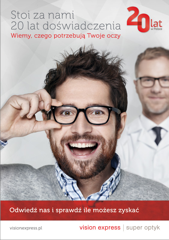 Vision Express to lider rynku, od 20 lat świadczący najwyższej jakości usługi z zakresu kompleksowej opieki i ochrony wzroku. Dzięki długoletniemu doświadczeniu marka wie, czego potrzebują jej klienci, a oferując gwarancję na swoje produkty i usługi, doszła do perfekcji w tym, co robi. Z tego też powodu kampania wizerunkowa marki Vision Express została oparta na nowej platformie komunikacyjnej jaką jest „Ekspert” i przedstawia markę jako specjalistę w dziedzinie dbania o wzrok, służącego pomocą od 20 lat. Idea kreatywna wykorzystuje sytuacje z życia klientów marki, w których zawsze pojawia się osoba Eksperta, uświadamiającego i pomagającego rozwiać problem ze wzrokiem.