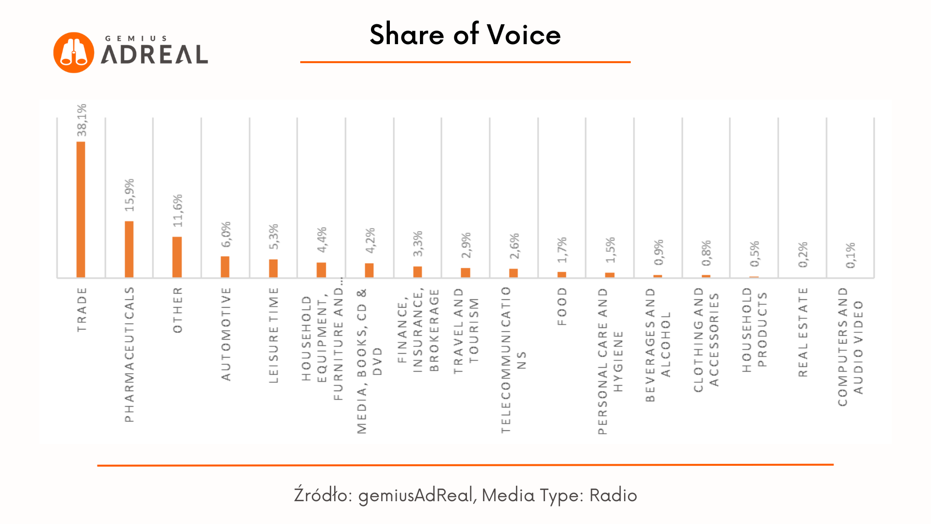W radiu branżą o największej liczbie kontaktów reklamowych w czerwcu była branża „Trade” (6,5 mld kontaktów reklamowych). Na drugim i trzecim miejscu znalazły się branże „Pharmaceuticals” (2,7 mld kontaktów) oraz „Automotive” (1,01 mld kontaktów).