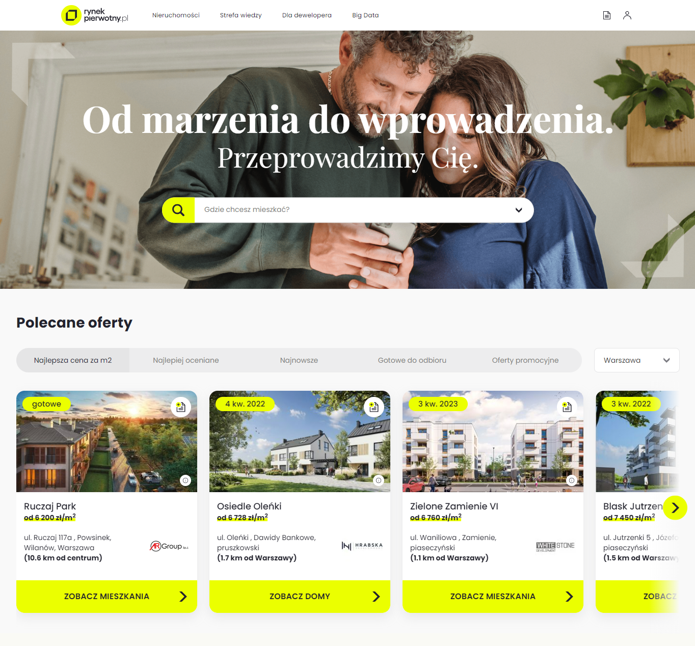 RynekPierwotny.pl to największy ogólnopolski portal zawierający oferty mieszkań i domów od deweloperów. Jego właścicielem jest firma Property Group, która w tym roku świętowała 13-lecie swojej działalności.