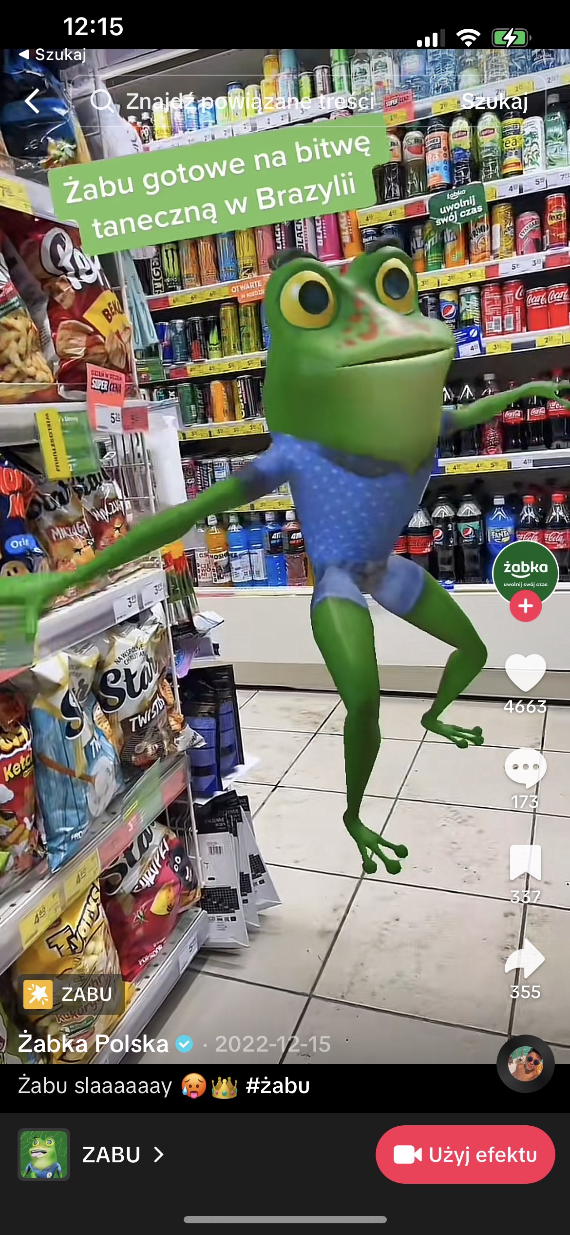 Reaguj na trendy: Żabka postanowiła wykorzystać popularność trendu, w którym pracownicy sklepu dzielą się humorystycznymi opowieściami związanymi z obsługą klientów i codzienną pracą w sklepie. Na oficjalnym kanale marki dynamika została odwrócona – to klienci stali się głównymi bohaterami historii, odgrywając zabawne sytuacje związane z zakupami w sklepie z charakterystycznym „uśmiechniętym” logo.