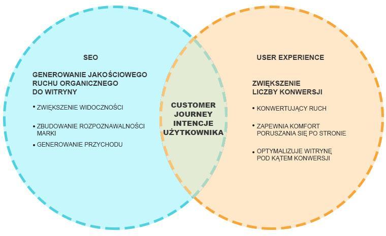Prace SEO koncentrują się głównie na optymalizacji architektury witryny oraz działaniach zewnętrznych, zwiększając wartość ruchu organicznego w witrynie. UX z kolei koncentruje się przede wszystkim na angażowaniu użytkowników, którzy trafili do danego sklepu. Minimalizuje to elementy rozpraszające i zwiększa efektywność sprzedaży. Tylko korelacja tych dwóch dziedzin pozwoli na efektywne pozyskiwanie nowych klientów z zapytań płynących do wyszukiwarki oraz finalizację sprzedaży bez problemu porzuconych koszyków.