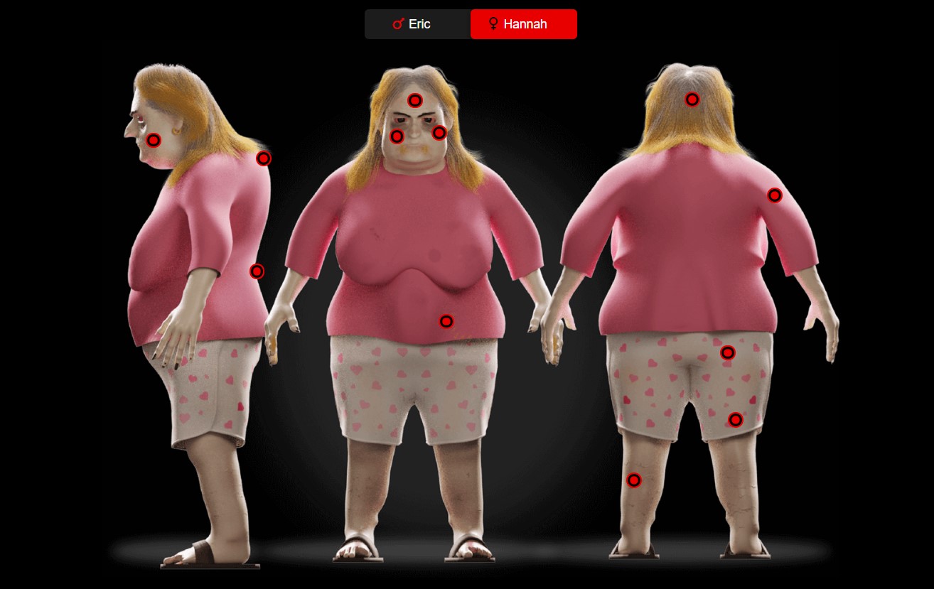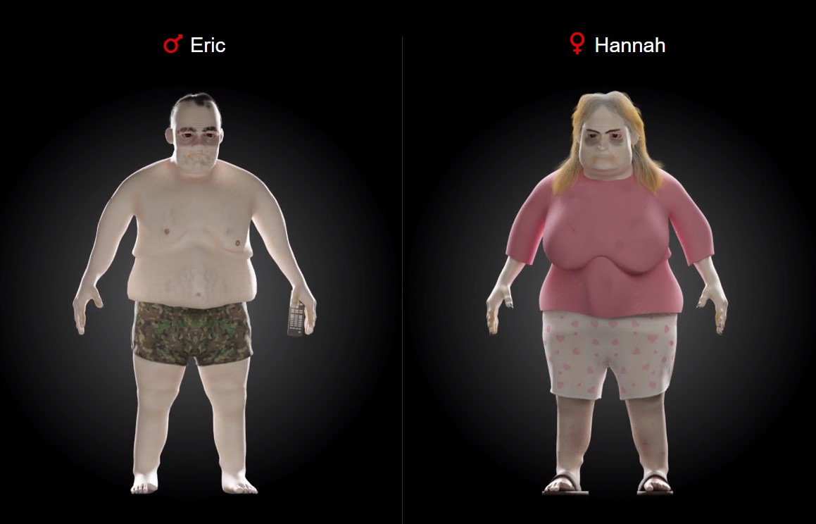 Erick i Hannah, bo tak nazywają się wirtualne postacie, przede wszystkim mają nienaturalnie bladą skórę z uwagi na niedobór światła słonecznego. Natomiast postępująca łysina u mężczyzny może też wynikać z niedoboru witamin B-12 i D.