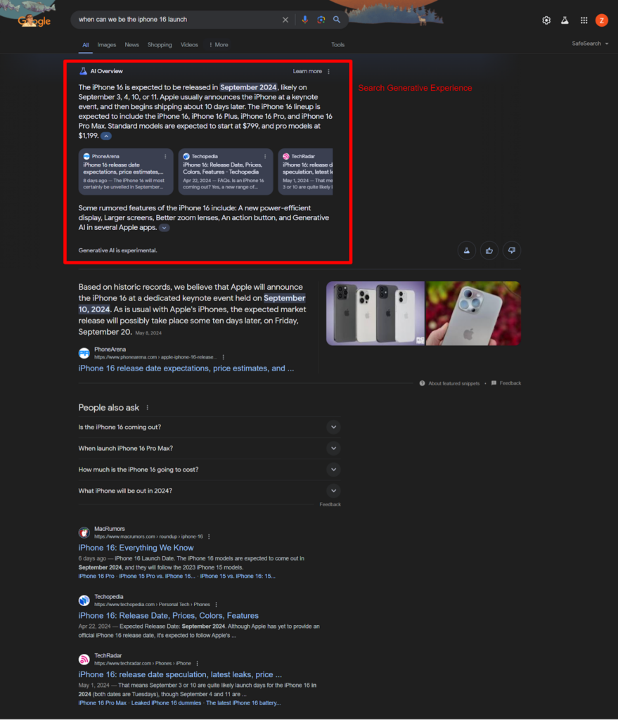 Wprowadzenie Search Generative Experience zmieni zarówno format, jak i funkcjonalność wyników wyszukiwania. Na stronie wyników pojawi się nowy moduł z podsumowaniami generowanymi przez AI, podczas gdy tradycyjne wyniki wyszukiwania będą umieszczone poniżej. Celem tej zmiany jest zapewnienie szybszego dostępu do najważniejszych informacji.