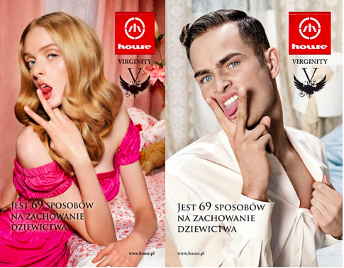 W 2008 roku polska marka odzieżowa House wystartowała z kontrowersyjną kampanią „Virginity House”. W całym kraju pojawiły się billboardy i citylighty przedstawiające w dwuznacznych pozach młodą, atrakcyjną modelkę lub przystojnego modela. Co więcej, w rękach złożonych w modlitewnym geście trzymali oni koraliki kształtem przypominające różaniec. Całej grafice towarzyszyły hasła „Strzeż mnie Ojcze” czy „Jest 69 sposobów na zachowanie dziewictwa”.