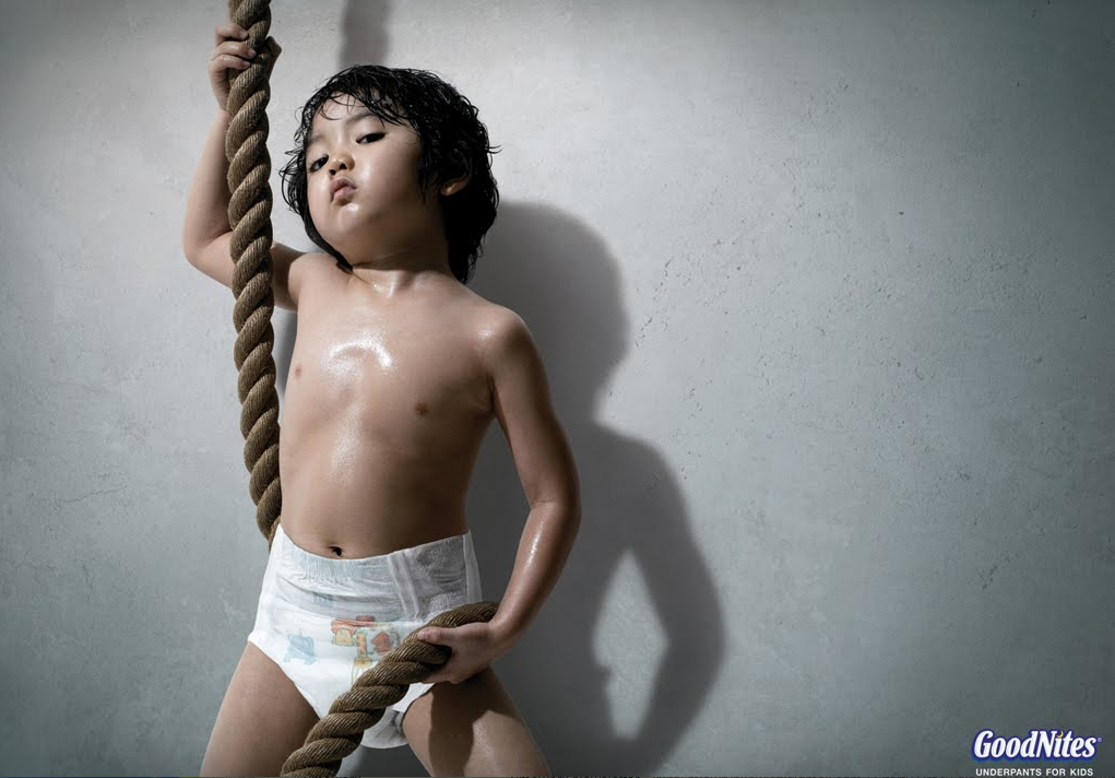 Choć w tutejszych sklepach na próżno szukać pieluszek GoodNites, to jednak w 2010 roku zrobiło się o nich głośno także w Polsce. Wszystko za sprawą kontrowersyjnej reklamy, która miała być nawiązaniem do kampanii linii Emporio Armani. Na billboardach stworzonych przez koreańską agencję Diamond Oglivy można było zobaczyć chłopca ubranego w samą pieluszkę. Nie byłoby w tym nic dziwnego, gdyby nie poza, jaką przybrało dziecko – wyraźnie odwzorowująca sylwetkę Davida Beckhama, bohatera kampanii Armaniego.