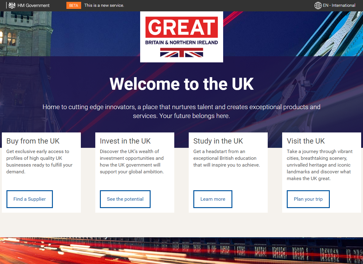 Wersja międzynarodowa i brytyjska strony Great.gov.uk