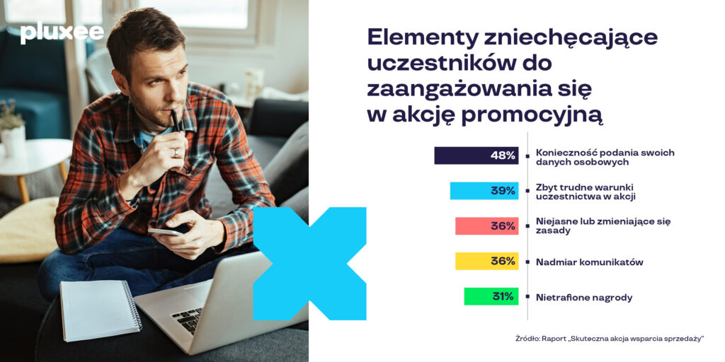 Autorzy badania sprawdzili także, jakie czynniki zniechęcają do udziału w akcjach promocyjnych. Najczęściej wskazywaną barierą okazała się konieczność podawania swoich danych osobowych – potwierdziła to prawie połowa badanych. Zaraz za nią uplasowały się zbyt trudne do spełnienia warunki uczestnictwa w akcji (39%), niejasne lub często zmieniające się zasady lub nadmiar komunikatów, przeciążenie reklamami, powiadomieniami (36%) oraz podanie wieku i zainteresowań (7%).