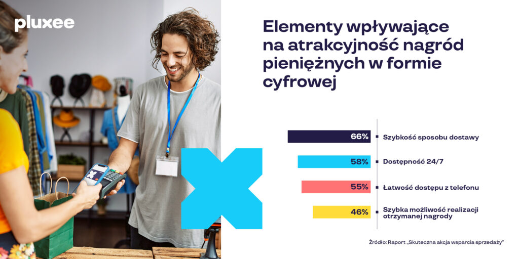 Jaka jeszcze powinna być nagroda, która motywuje do udziału w akcji wsparcia sprzedaży? Według Raportu IRCenter i Pluxee Polska przede wszystkim uniwersalna i dająca wolność wyboru (mogą to być np. środki na karcie, za które nagrodzony samodzielnie kupi sobie moją przyjemność) – wskazało na to 60% badanych. Kolejnym ważnym aspektem jest dostępność – ponad połowa Polaków przyznała, że chce mieć dostęp do nagrody od razu po jej otrzymaniu. Na trzecim miejscu wymieniano wartość nagrody – powinna być ona na tyle wysoka, by wygrany mógł mieć z niej konkretną przyjemność (44%).