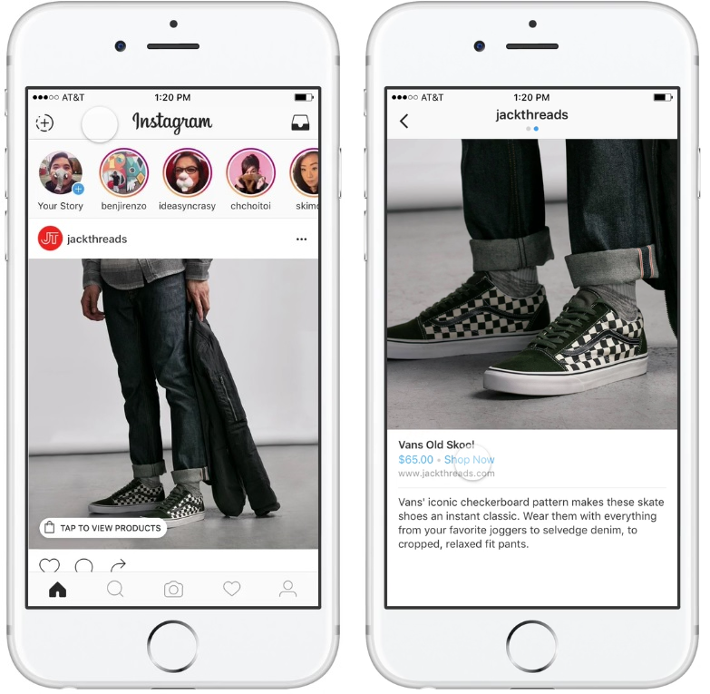 Zgodnie z oficjalną informacją podaną przez Instagram, w pierwszej fazie wdrożenia, nowe funkcje zostaną udostępnione wybranym 20 markom (z branży retail) w USA. Jak w praktyce będzie to wyglądać? Na zdjęciu z produktami, użytkownik będzie miał możliwość sprawdzić np. ich cenę (poprzez kliknięcie w przycisk „Tap to view products”). Klikając na interesujący go produkt, zostanie przekierowany na stronę z jego szczegółowym opisem. Na tym etapie może również użyć przycisku „Shop Now”. Po jego kliknięciu zostanie przekierowany na stronę zewnętrzną, na której może dokonać zakupu.
