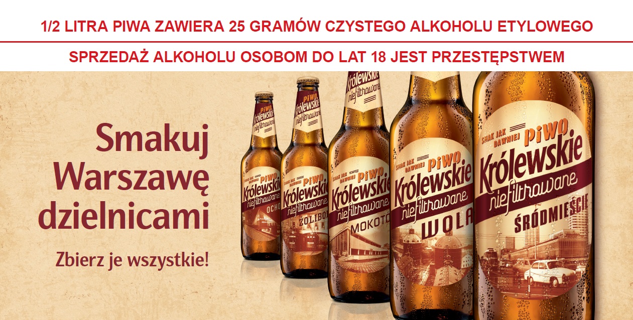 Dzielnicowa kolekcja została poszerzona o 18 wzorów butelek Królewskiego Jasne Pełne. Nowe kreacje opakowań to oryginalne, graficzne interpretacje miejsc i symboli warszawskich dzielnic – ursynowski Tor Służewiec, Aeroklub Warszawski na Bemowie, Las Bielański, latarnie gazowe na Mokotowie czy Filtry na Ochocie. Do kampanii dołączyło także Królewskie Niefiltrowane – piwo inspirowane klimatem dawnej Warszawy. Jest ono dostępne w opakowaniach dedykowanych 7 najstarszym dzielnicom, prezentujących historyczne miejsca – słynny mokotowski SAM, dworzec Warszawa Ochota czy Gazownię na Woli.