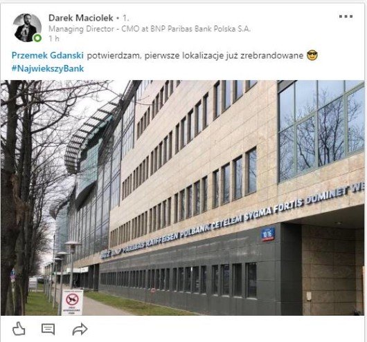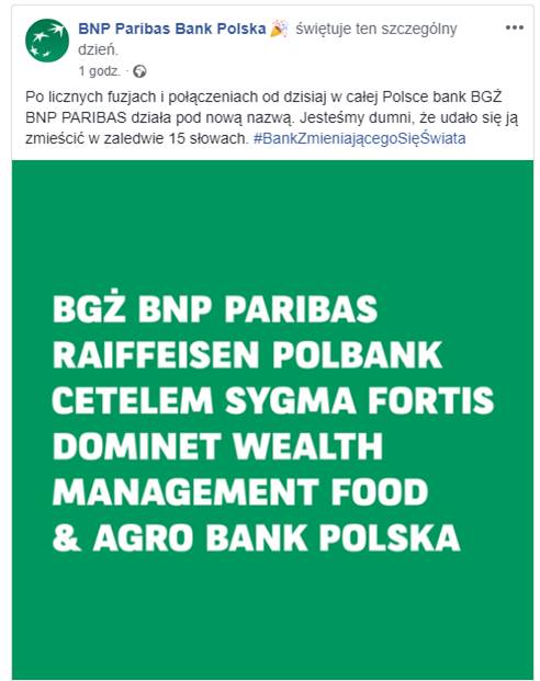 1 kwietnia bank BGŻ BNP Paribas zmienił swoją nazwę na BNP Paribas. Jest to związane z przejęciem Raiffeisen Polbanku. W związku z tegorocznym Prima aprilis, bank stworzył akcję z przymrużeniem oka pt. „Najdłuższa nazwa banku”.