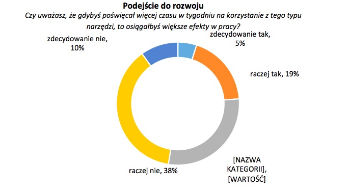 Okazuje się, że mimo iż narzędzia do monitoringu mediów tradycyjnych (prasa, radio, tv) są popularne wśród większości przebadanych specjalistów (64%), korzystanie z nich zajmuje im stosunkowo niewiele czasu – średnio do 1 godziny tygodniowo. W dodatku, co trzeci respondent chciałby zmniejszyć ilość czasu poświęcanego na korzystanie z tych narzędzi. Niemal co drugi badany (48%) jest przekonany, że zwiększenie ilości czasu poświęconego na korzystanie z narzędzi do monitoringu mediów tradycyjnych nie poprawiłoby jego efektywności w pracy.