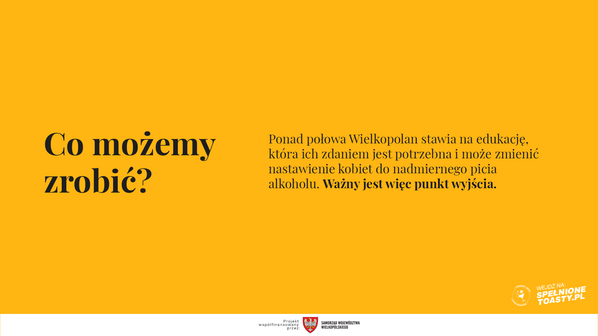 Za zdrowie Pań, Po maluchu i Rozchodniaczek – to popularne toasty oraz rozdziały nowej kampanii społecznej przygotowanej z udziałem Urzędu Marszałkowskiego Województwa Wielkopolskiego. Kampania mówi o skomplikowanej relacji kobiet i alkoholu, poruszając temat z wielu różnych stron.