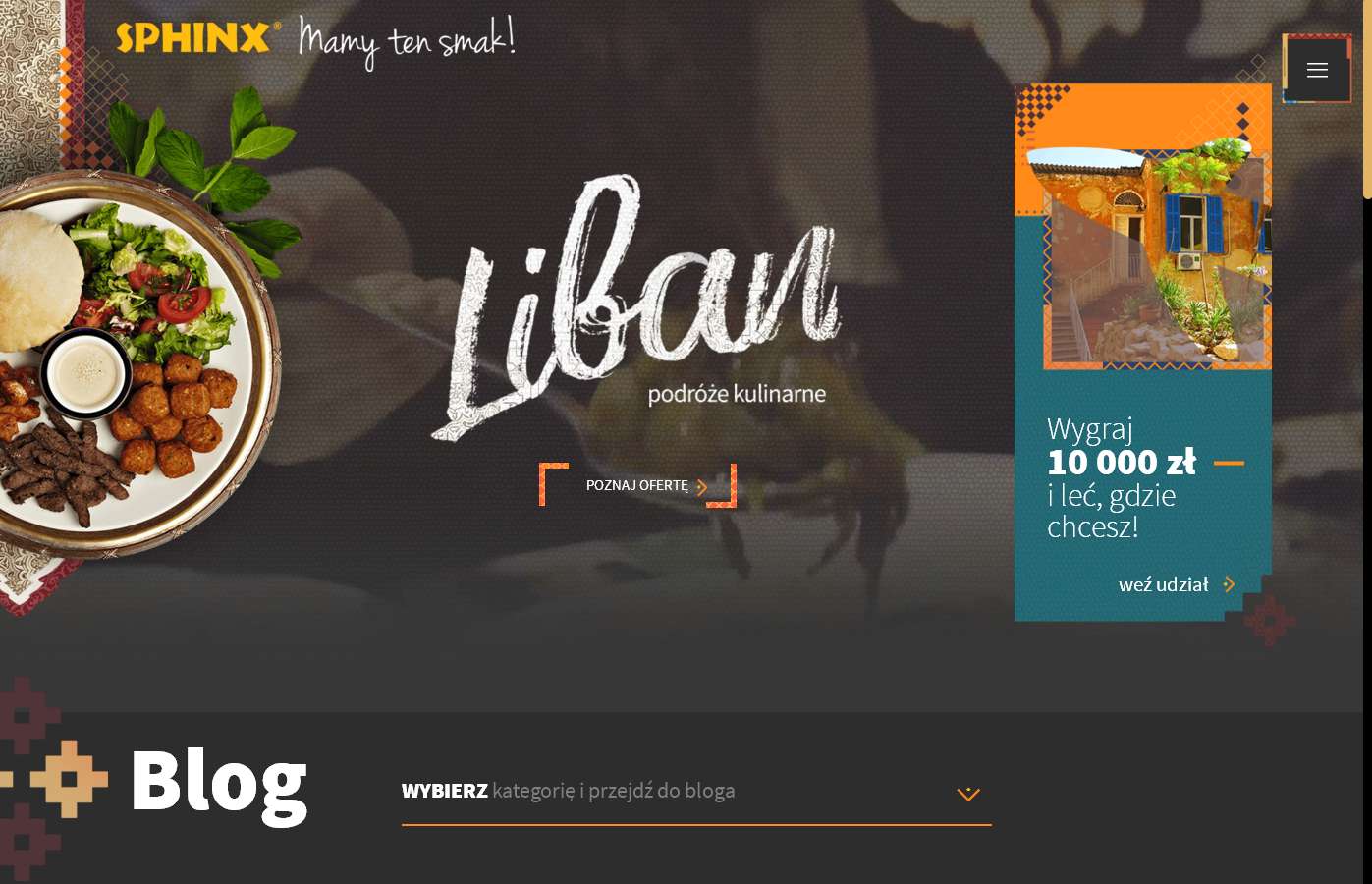 …z daniami inspirowanymi kuchnią Libanu, które w tym roku w restauracjach Sphinx pojawią się łącznie w czterech odsłonach. Równocześnie z blogiem Sphinx ogłosił konkurs, w którym do wygrania jest do 10 000 zł na podróż w dowolne miejsce.