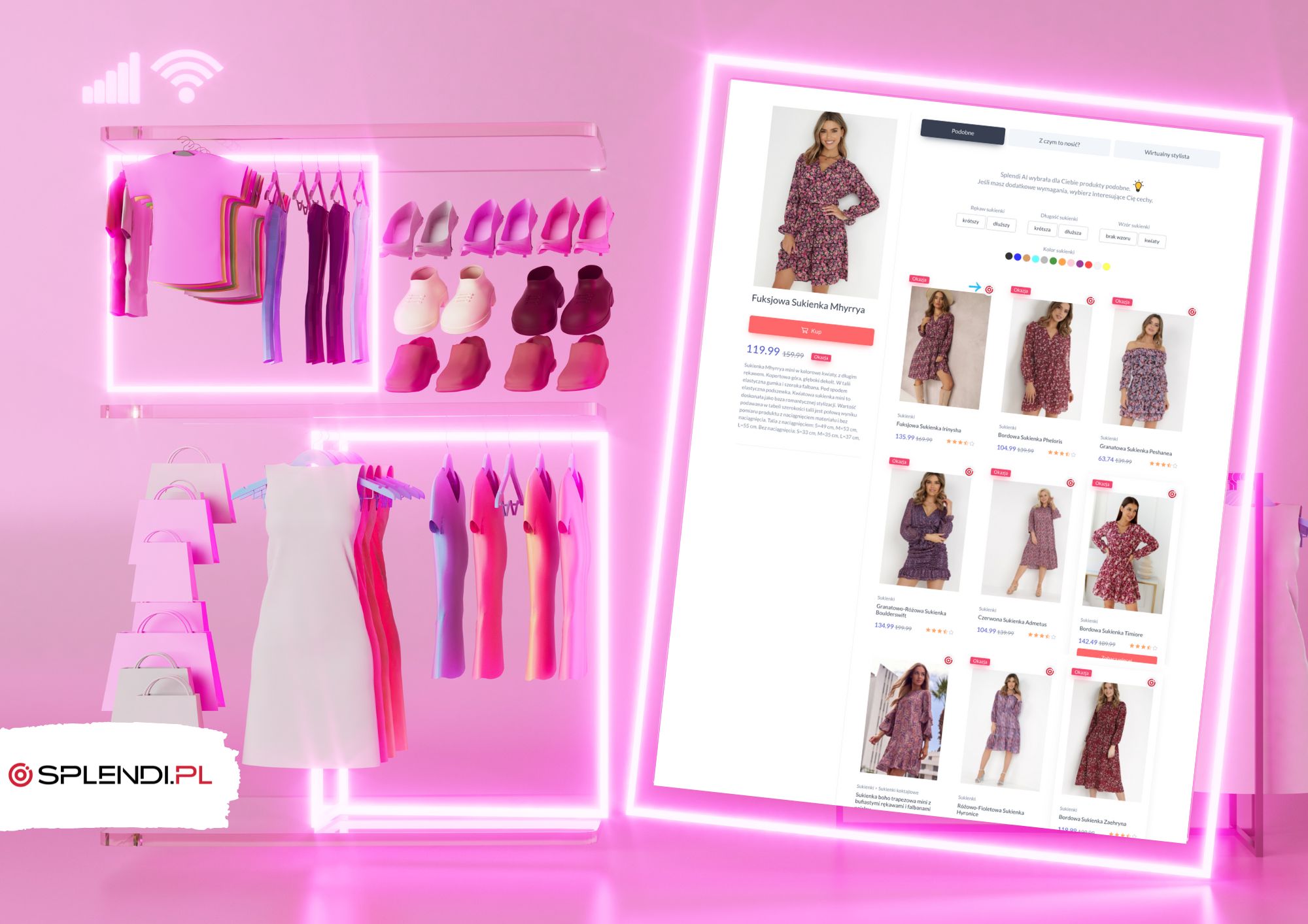 W większości e-sklepów znajdujemy pod oglądanym ubraniem sekcję „produkty podobne”. Często są to ubrania podobne tylko z nazwy, bowiem o podobieństwie decyduje pracownik sklepu przygotowujący opis danego elementu garderoby. W Splendi.pl podobieństwo produktów jest określane przez sztuczną inteligencję, co zdecydowanie odróżnia pokazywane wyniki od sposobu, w jaki robią sklepy, popularne wyszukiwarki lub porównywarki ofert.