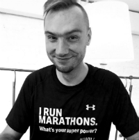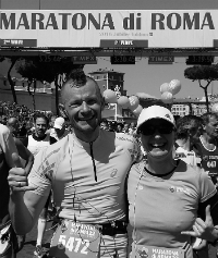 Sport jest dla mnie bardzo istotny. Pozwala oderwać się od bieżących kwestii, odpocząć, przemyśleć to, co ważne i znaleźć rozwiązanie. Jest trochę jak każdy nałóg – jak nie wyjdę na trening, to czegoś mi brakuje. Często jest też powodem do dumy, że jestem w stanie zmotywować się do wysiłku, który dla wielu osób wydaje się nieosiągalny. Dzięki częstym aktywnościom sportowym mogę jeść wszystko i w dowolnej ilości, a przyznaję jeść lubię, najlepiej dużo. 🙂 Sport jest moim sposobem na zbieranie funduszy na cele charytatywne, spędzanie czasu, poznawanie przyrody i innych miejsc. Dzięki treningom i startom zagranicą poznaję nowych ludzi – jak na przykład ostatnio podczas Maratonu w Rzymie. Pierwszy raz z regularnym bieganiem zetknąłem się w roku 2003. Wyjście do lasu i kilka do kilkunastu kilometrów biegu to był sposób na trudny w ówczesnym czasie moment życiowy. Przyznaję, że biegałem bez ładu i składu, bez pomiaru tętna, zrozumienia, o co w ogóle w bieganiu chodzi, bez limitów czasu, ot tak, żeby się poruszać. W gwarze biegowej „klepałem kilometry”. Później zacząłem mierzyć czas na określonym dystansie, ale bez większych konkluzji. Biegałem bardzo nieregularnie, wyłącznie kiedy miałem ochotę, bez konkretnej motywacji. Wystartowałem w 3 maratonach łódzkich, czasy 4:05, 4:07, 4:02. To dało mi do myślenia, czy faktycznie nie jestem w stanie pokonać mitycznej dla mnie bariery 4 godzin? O kilku lat trenuję regularnie, z planem, trenerem i zrozumieniem tego co i jak robię. To przyniosło rezultaty. Dla motywacji i podkreślenia celu staram się startować w imprezach, na które trzeba zapracować, zarejestrować się wcześnie i czekać. Jeżdżę też na maratony do innych krajów, biegłem m.in. w Nowym Yorku, Barcelonie, Paryżu i Rzymie. W tym ostatnim ustaliłem swój rekord życiowy – 3:28.