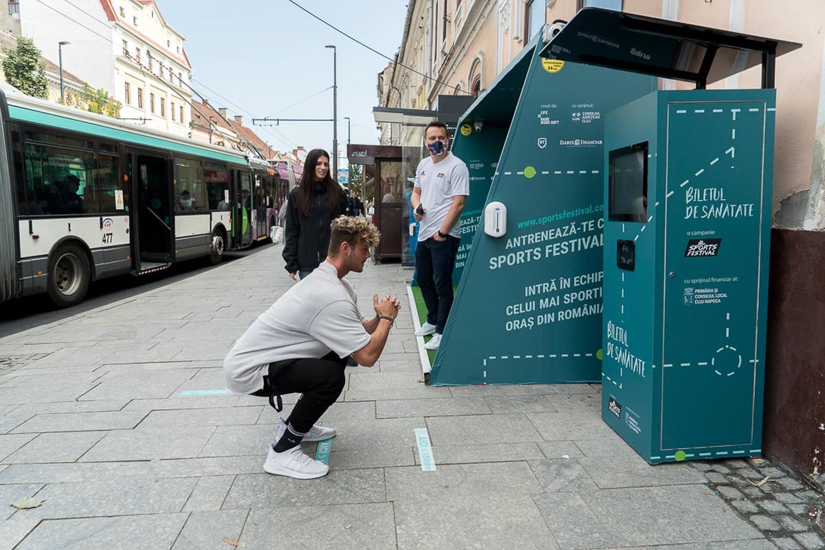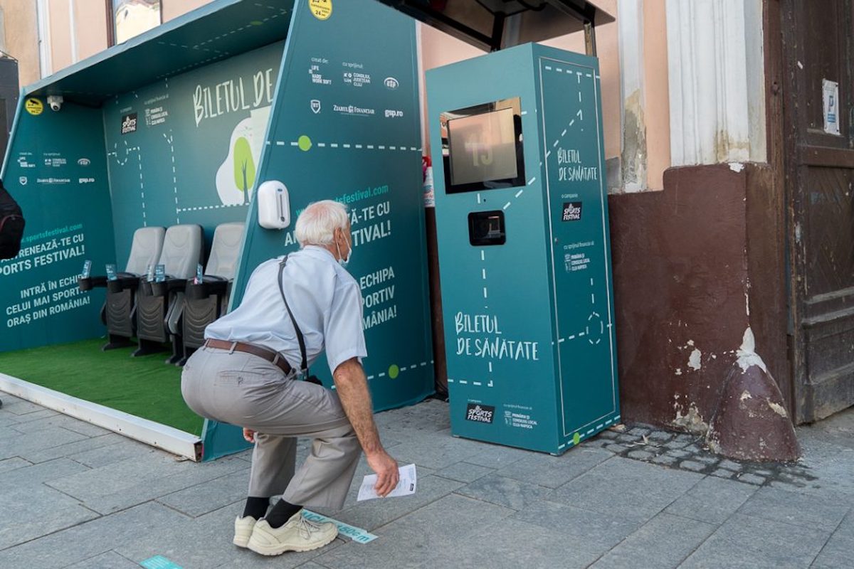 Zainstalowany na dworcu autobusowym biletomat oferuje tzw. „bilety zdrowotne”. O co chodzi? Taki bilet jest wydawany po podjęciu wysiłku fizycznego – wystarczy wykonać 20 przysiadów przed kamerą dystrybutora, aby otrzymać darmowy przejazd ważny przez 7 dni (dotyczy całej komunikacji miejskiej w Kluż-Napoka).