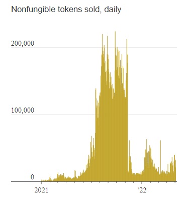 Co więcej, szwedzki serwis prowadzi testy galerii NFT w czasie, gdy rynek niewymienialnych tokenów odnotowuje spore spadki – dzienna sprzedaż NFT zmniejszyła się w ostatnich miesiącach o 92%. Według serwisu NonFungible we wrześniu ubiegłego roku średnia dzienna liczba sprzedaży tokenów wynosiła 225 tys., natomiast stan na dzień 3 maja 2022 roku to zaledwie 19 tys. Tym samym liczba aktywnych portfeli na rynku NFT spadła na początku maja o 88%.