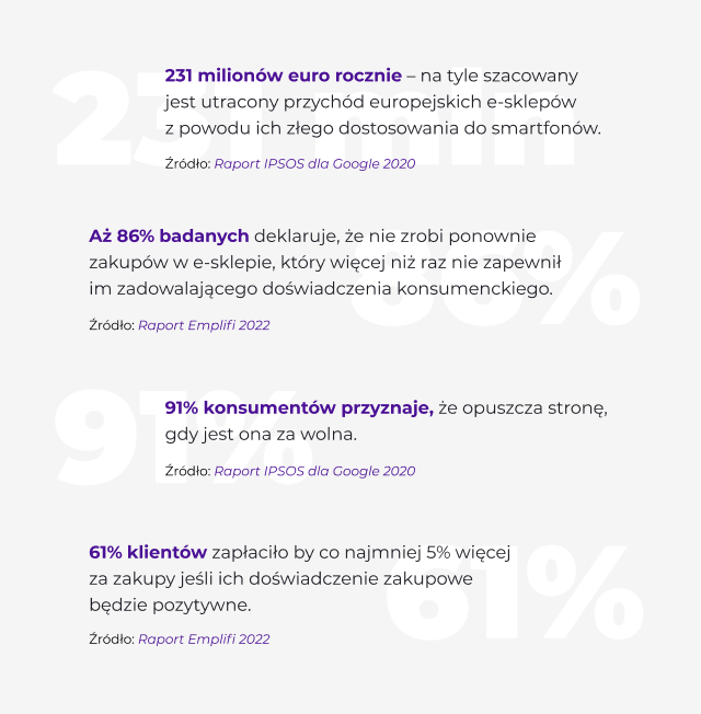 Zaledwie 13% sklepów internetowych B2B posiada odpowiednio zaprojektowaną ścieżkę zakupową, ułatwiając proces składania zamówienia. Pozostała część witryn oceniana jest jako mało atrakcyjna i nieintuicyjna. Zatem zadbanie o dobry UX/UI design swojego e-sklepu to najkrótsza droga do zdobycia przewagi konkurencyjnej nad 87% sprzedawców B2B na rynku*.