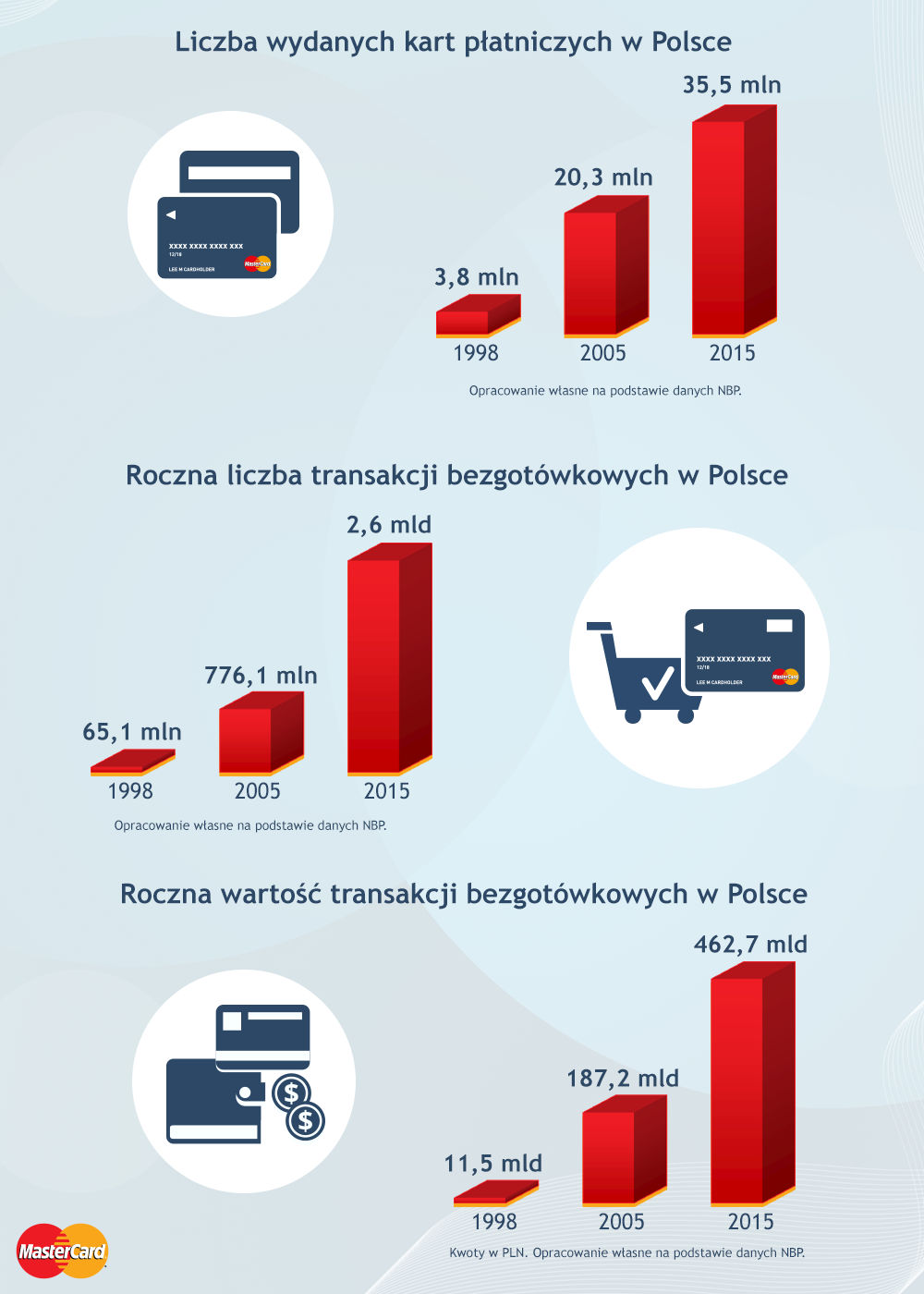 Sygnał do zmian dał MasterCard, wprowadzając w 2007 roku pierwszą w Polsce kartę w technologii zbliżeniowej. Ten nowy typ karty, umożliwiający wygodne, szybkie i bezpieczne płatności oraz eliminujący potrzebę wpisywania numeru PIN przy zakupach do 50 PLN, szybko podbił serca Polaków. Po ośmiu latach od debiutu już 3 na 4 karty w Polsce umożliwiają płatność zbliżeniową. Tylko na przestrzeni ostatnich dwóch lat ich liczba wzrosła o ponad 10 milionów. Płatność bezstykowa stała się juz standardem – ponad 40% transakcji wykonywanych kartami MasterCard to płatności zbliżeniowe. Ten skok popularności był tak gwałtowny, że umieścił nasz kraj w elicie najnowocześniejszych systemów płatniczych na świecie. W tej dziedzinie stanowimy wzór dla innych.
