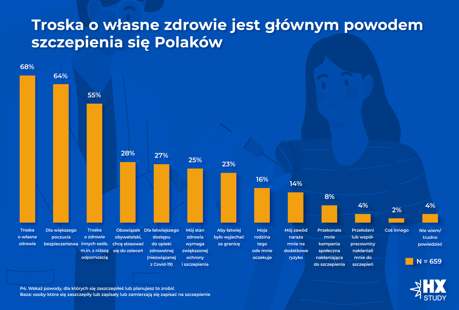 Kolejne badania potwierdzają, że ponad 68% Polaków to zwolennicy szczepień, podczas gdy 32% to osoby, które mają wobec nich wątpliwości, sprawiające, że nie zamierzają się szczepić. W obliczu kolejnej fali zachorowań te dane są niepokojące. Z badania HX Study zrealizowanego przez agencję mediową Starcom we współpracy z departamentem data science dowiadujemy się, co mogłoby skłonić niezdecydowanych Polaków do szczepień, a w konsekwencji uchronić nas przed kolejnymi obostrzeniami jesienią.