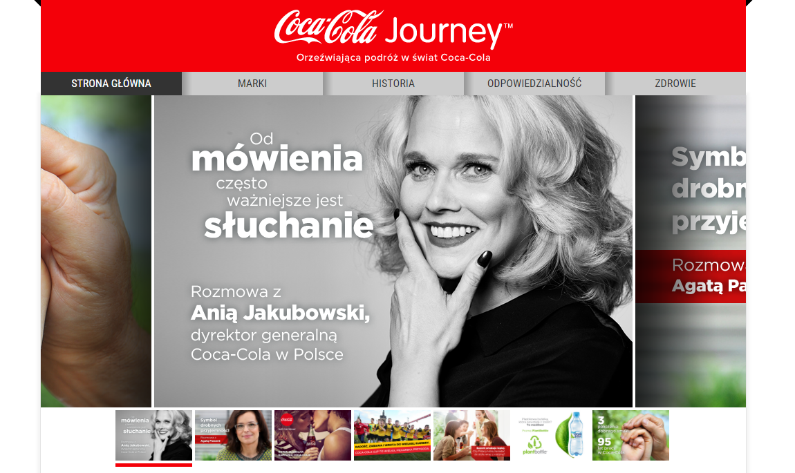 „Nowy serwis to nowy sposób na pokazanie w szerszym kontekście wszystkiego, co dla nas ważne. Jest też fascynującym wyzwaniem; projekt przełamuje przekonania dotyczące tego jak powinien działać i czym powinien być internetowy serwis firmy“– komentuje Anna Solarek, Dyrektor ds. komunikacji i kontaktów zewnętrznych w Coca-Cola Poland Services. –„Mamy nadzieję, że zamieszczane w nim materiały będą inicjować dyskusje i inspirować. Zastąpienie przez cyfrowy magazyn klasycznego serwisu korporacyjnego to projekt zupełnie wyjątkowy. Mamy nadzieję, że Coca-Cola Journey spodoba się naszym konsumentom.“