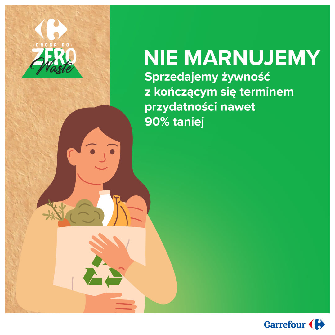 Niedawno firma zainicjowała akcję pod hasłem „STOP Marnotrawstwu”, która jest elementem szerszej inicjatywy ogólnopolskiego programu „STOP Marnotrawstwu” zachęcającego do przeciwdziałania marnowaniu zasobów naszej planety. W ramach inicjatywy w hiper-i supermarketach Carrefour pojawiły się specjalne strefy podzielone na sektory dedykowane produktom suchym oraz świeżym, w których klienci mogą znaleźć w pełni wartościowe towary mające krótki termin ważności, w cenach obniżonych nawet o 90 procent.