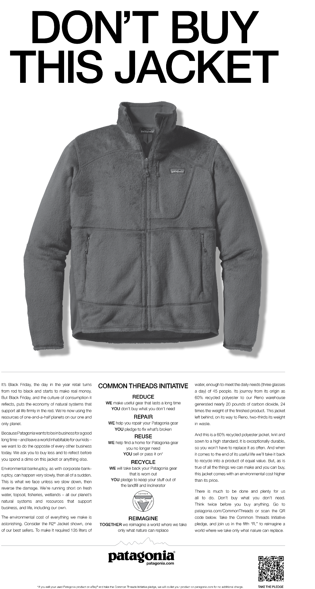 „Nie kupuj tej kurtki!” – reklama Patagonia w New York Times, 2011, źródło: patagonia.com