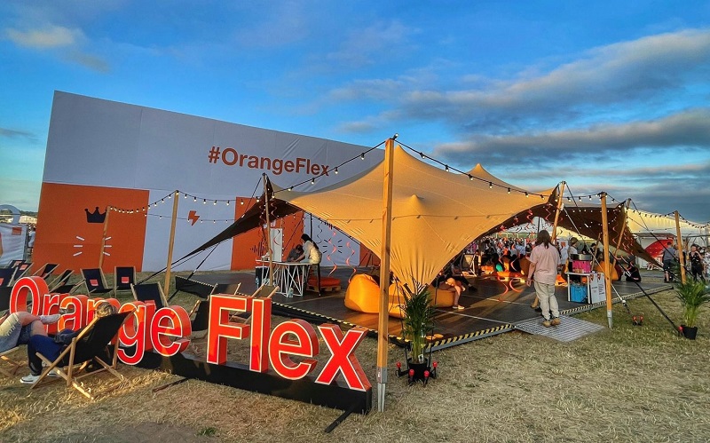 Marka telekomunikacyjna, jako główny sponsor wydarzenia, od lat pojawia się także z własną strefą Orange Flex na Open’er Festival. W tym roku strefa z trybuną zapewniła miejsca z widokiem na scenę główną dla ponad 400 festiwalowiczów. Druga część, czyli strefa relaksu z leżakami, poduchami i pufami, stanowiła przestrzeń, w której uczestnicy mogli naładować baterie – dosłownie i w przenośni. Podczas wielogodzinnych festiwali jedną z pierwszych potrzeb staje się dostęp do ładowarki, zatem udostępnienie punktu, w którym można naładować smartfona, to must have w strefie technologicznej marki.