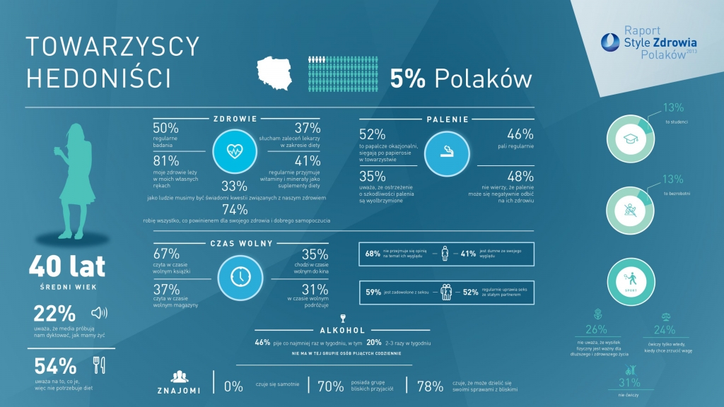 Czy istnieje jeden polski Styl Zdrowia? Raport „USP Zdrowie – Style Zdrowia Polaków 2013” wskazuje, iż 8 wyłonionych w badaniu segmentów charakteryzuje duża różnorodność postaw wobec zdrowia. Część segmentów cechuje się zdrowym stylem życia oraz inicjatywą do poprawy własnego samopoczucia, podczas gdy inne dla swojego zdrowia robią niewiele.