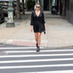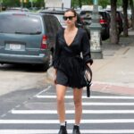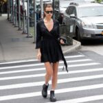 Irina Shayk – jedna z najpopularniejszych światowych modelek – została uchwycona na ulicach Nowego Jorku w czarnym total looku. Modelka miała na sobie kopertową mini sukienkę reaktywowanej polskiej marki Rage Age. Masywnymi czarnymi botkami przełamała dziewczęcy look, tworząc casualową stylizację osadzoną w aktualnych trendach. Modowego akcentu dodały również białe skarpetki wystające z militarnych botków oraz ciemne okulary.