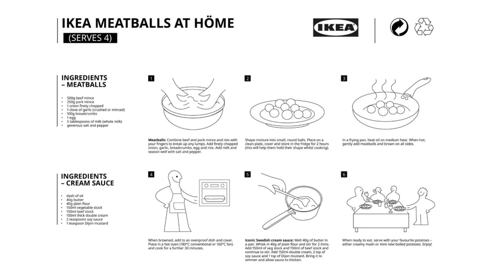 W związku z tym, że wielu z nas przebywa aktualnie na kwarantannie domowej, IKEA postanowiła udostępnić swój oryginalny przepis na kultowe już klopsiki – nie został on jednak opublikowany w standardowej formie, a przypomina instrukcję składania mebli.