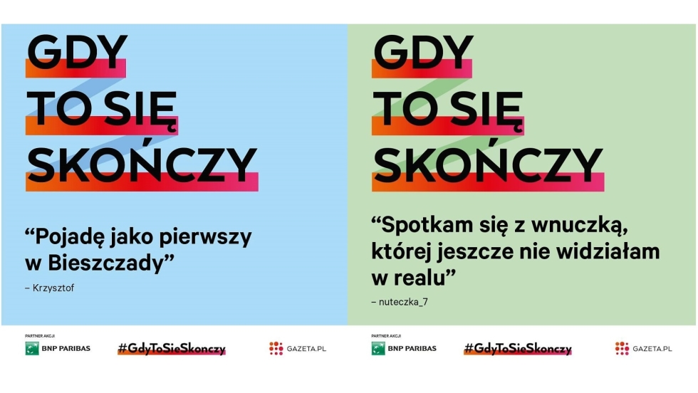 Portal Gazeta.pl i bank BNP Paribas zainicjowali akcję pod hasłem „Gdy to się skończy”. Współtwórcami projektu są internauci, którzy podzielili się swoimi planami na to, co zrobią, gdy skończy się pandemia koronawirusa.