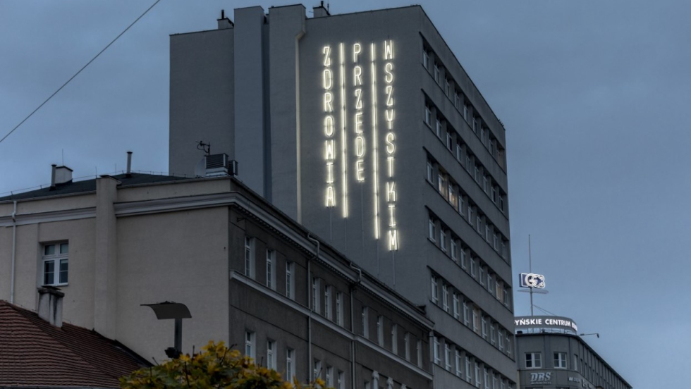 To kolejna ciekawa realizacja Stowarzyszenia Traffic Design. Tym razem artyści postanowili podnieść na duchu mieszkańców Gdyni i umieścili na elewacji szpitala św. Wincentego a Paulo neon z hasłem „Zdrowia przede wszystkim”.