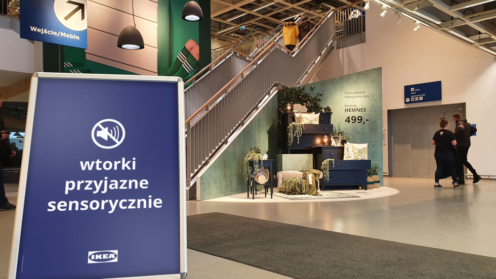 11 lutego br. IKEA Kraków po raz pierwszy na cały dzień wyłączyła muzykę i reklamy, przyciemniła oświetlenie, udostępniła specjalną strefę wyciszenia oraz kasy z pierwszeństwem dla klientów ze spektrum autyzmu. Tak jest teraz w każdy wtorek w krakowskim markecie sieci.