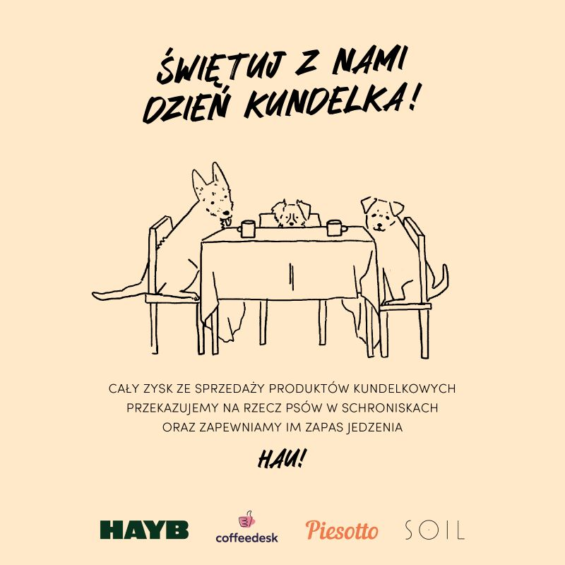 Kawa Kundelkowa to inicjatywa warszawskiej palarni kawy speciality HAYB, która wraz z partnerami świętuje Dzień Kundelka, wspierając psy w schroniskach. Cały zysk ze sprzedaży Kawy Kundelkowej oraz produktów towarzyszących akcji zostanie przekazany schronisku Viva! w Korabiewicach oraz schroniskom poszkodowanym w powodzi.