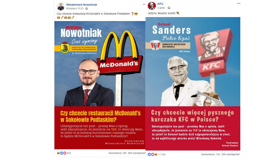 KFC w żartobliwy sposób odpowiedziało na post wyborczy zamieszczony przez jednego z kandydatów na burmistrza. Sieć fast-foodów zapowiedziała, że jeżeli Colonel Sanders zostanie burmistrzem to wróci Wtorkowy Kubełek.