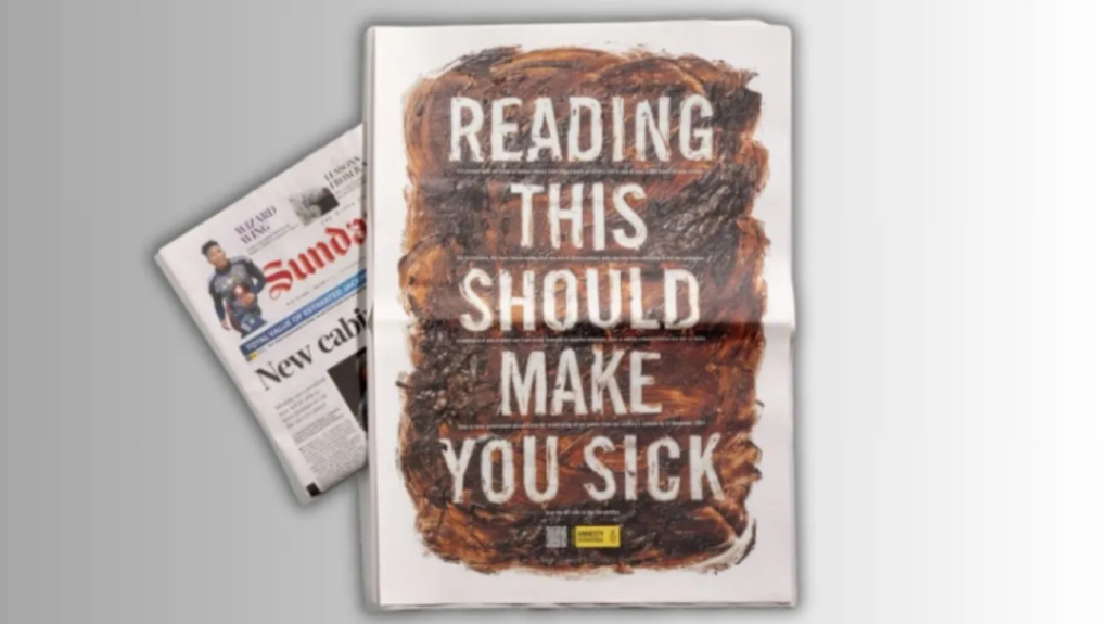 Reklama Anesty International, w której wykorzystano tusz z ludzkich odchodów
